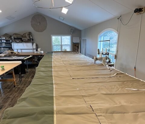 The covers and woodwork we do in our own shop are done from scratch to exacting standards. This human touch allows us to use our brains and hands to work beyond the normal limits of machines. There are 70’ seams on the yurt that require total care, teamwork and devotion to make.